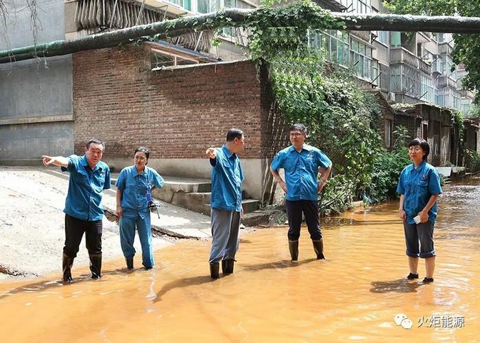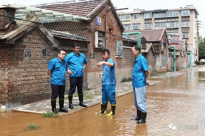 8月14日上午,風(fēng)帆公司黨委副書記、總經(jīng)理周中杰來到火炬能源社區(qū),現(xiàn)場查看社區(qū)受災(zāi)情況,指揮搶險救災(zāi)工作,火炬能源公司領(lǐng)導(dǎo)李玉柱、陳維揚(yáng)陪同查看汛情。