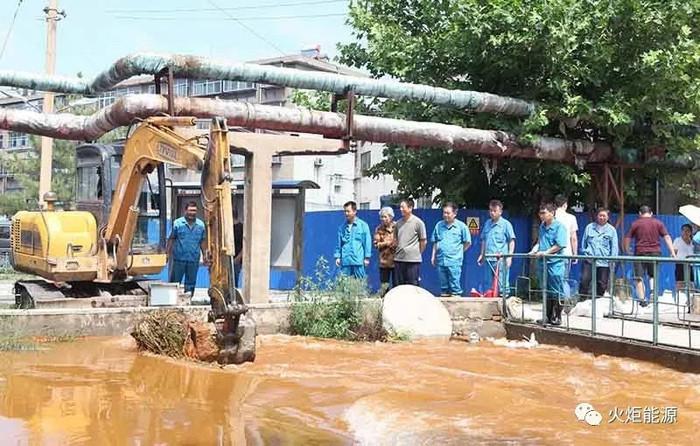 在連續(xù)四日三夜的抗洪搶險之后,14日一早,公司有關(guān)領(lǐng)導(dǎo)即帶領(lǐng)保衛(wèi)部、動力工程部人員再次來到現(xiàn)場,結(jié)合即時汛情研究制定解決方案,調(diào)來工程車輛備用。周中杰、李玉柱、陳維揚(yáng)等領(lǐng)導(dǎo)現(xiàn)場商討排水方案,抗洪人員力排各種不利因素,清除河道雜草,打開上游來水與暖水河的連接渠道,并在周邊區(qū)域打造沙袋圍堤,引水入河,有效緩解社區(qū)積水。