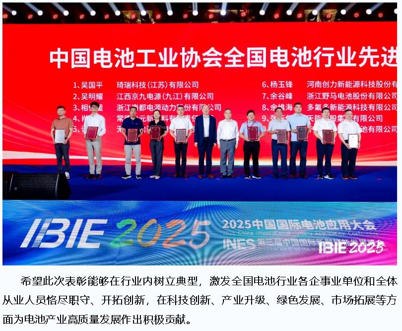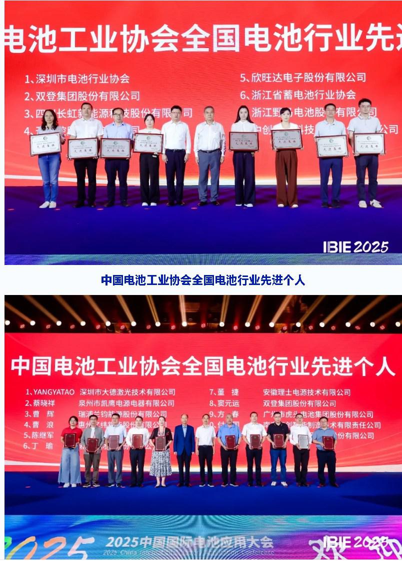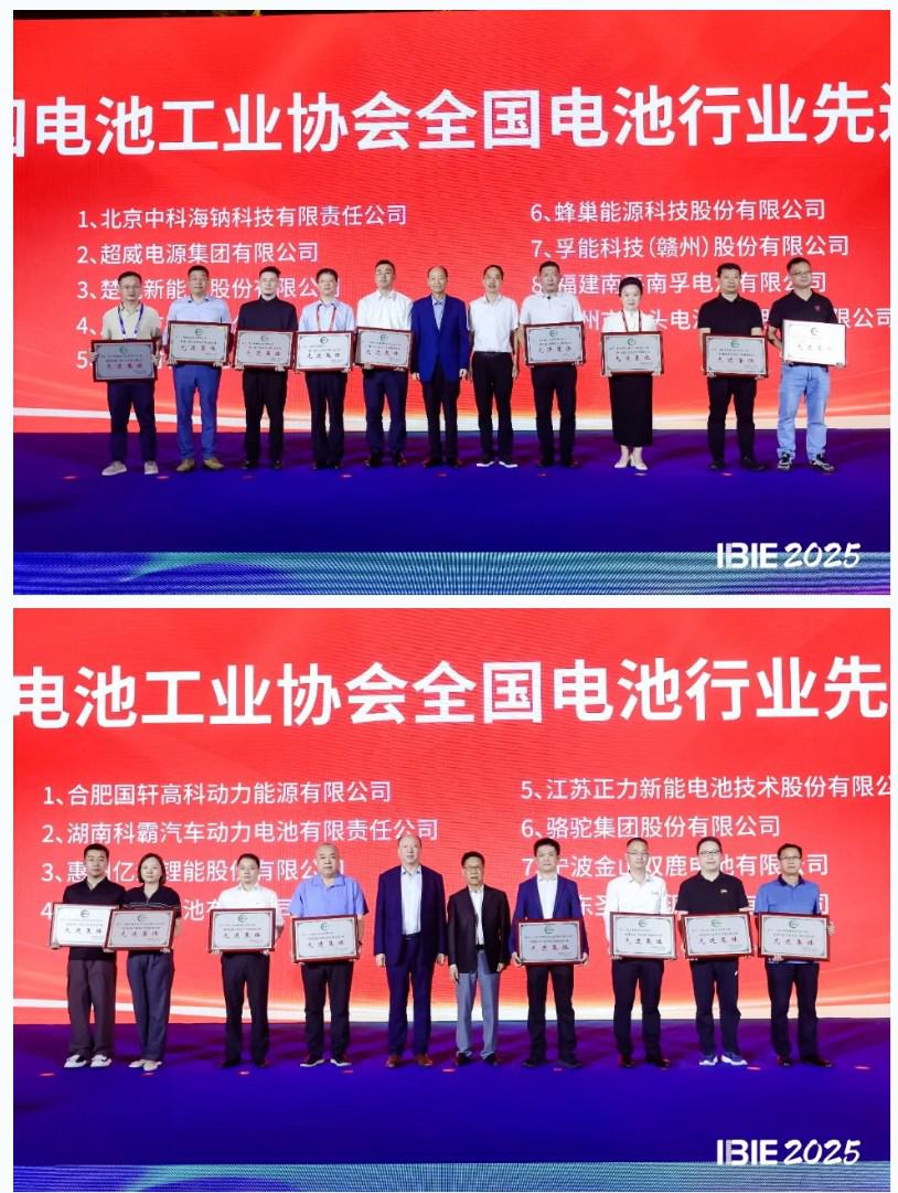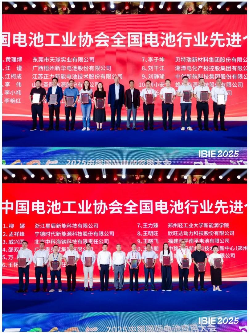 2025年10月10日,在第十五屆中國國際電池工業(yè)博覽會(IBIE2025)暨2025中國國際電池應(yīng)用大會召開期間,中國電池工業(yè)協(xié)會全國電池行業(yè)先進(jìn)集體和先進(jìn)個人頒獎儀式在深圳隆重舉辦。