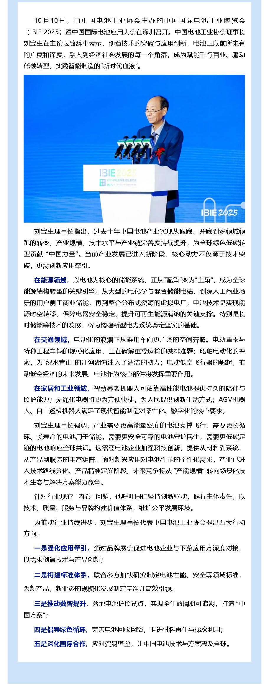 IBIE2025 | 中國電池工業(yè)協(xié)會理事長劉寶生:電池成 “新時代血液”,深度賦能千行百業(yè)